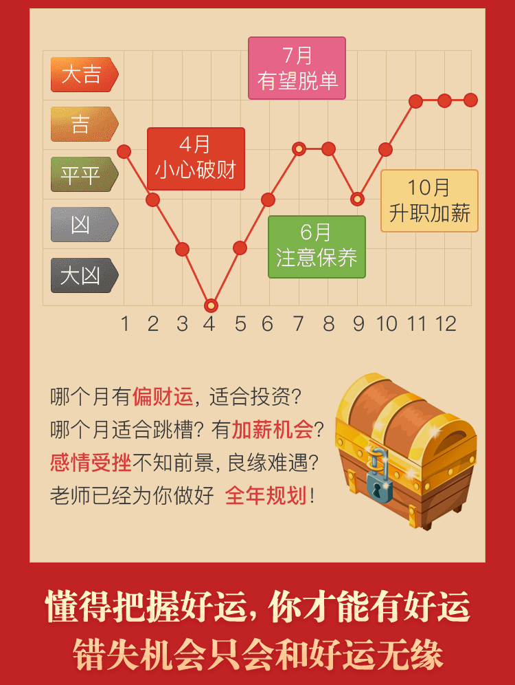 2、在您体验测算服务时,我们需要获取您的姓名和生辰命格(出生日期),为了保证数据准确性,我们建议您提供真实的个人信息,若您提供的信息有错误,会对测算结果的准确性造成偏差。我们保证您的所有个人信息除了用于生成测算数据以外,不会用于其他用途。